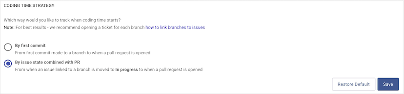 - If a branch is not linked to a Jira issue, LinearB defaults to using the timestamp of the first commit as the start of coding time.