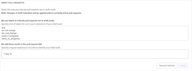 - Enter regular expressions that match your organization’s draft PR naming patterns.
