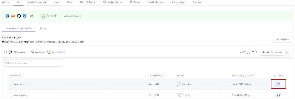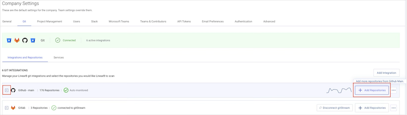 For more information, refer to the article Add Additional Repositories to LinearB.
